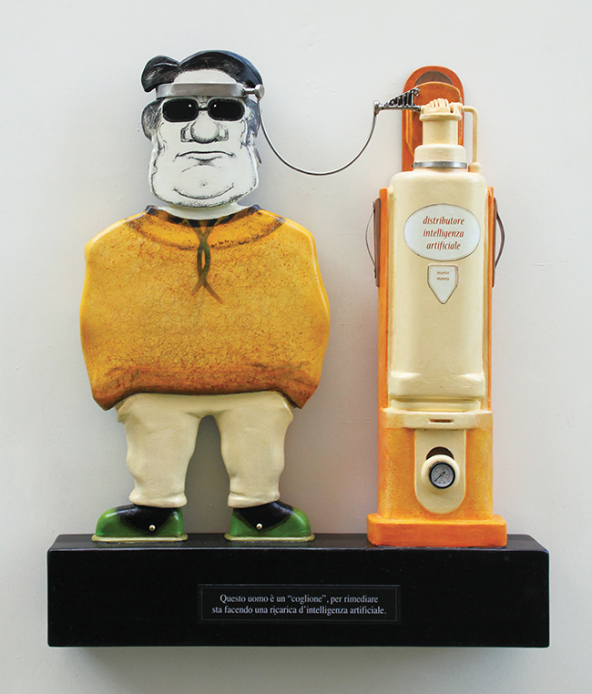 2021. Bassorilievo in legno dipinto e vero tostapane